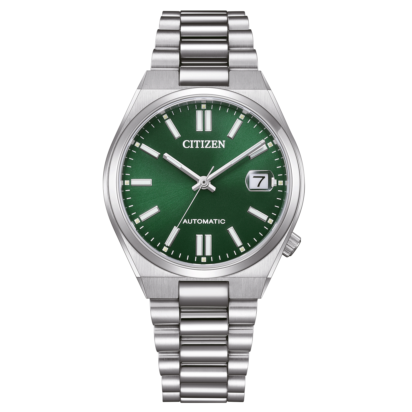 Der Gehäusedurchmesser ist geschrumpft, die Features nicht. Im Inneren der neuen Tsuyosa-Modelle arbeitet nach wie vor ein automatisches Inhouse-Werk (Kaliber 8210) – dasselbe wie bei den größeren Varianten. Dazu kommen: Ein kratzfestes Saphirglas mit Lupe über dem Datumsfenster, Leuchtmasse auf Zeigern und Indizes, ein Glasboden, eine Krone auf „4 Uhr“ für eine schlanke Silhouette und Tragekomfort. Für Letzteres sorgt zusätzlich das integrierte Edelstahlband mit abgerundeten Gliedern. Die Wasserdichtigkeit liegt bei 5 bar (50 Meter).