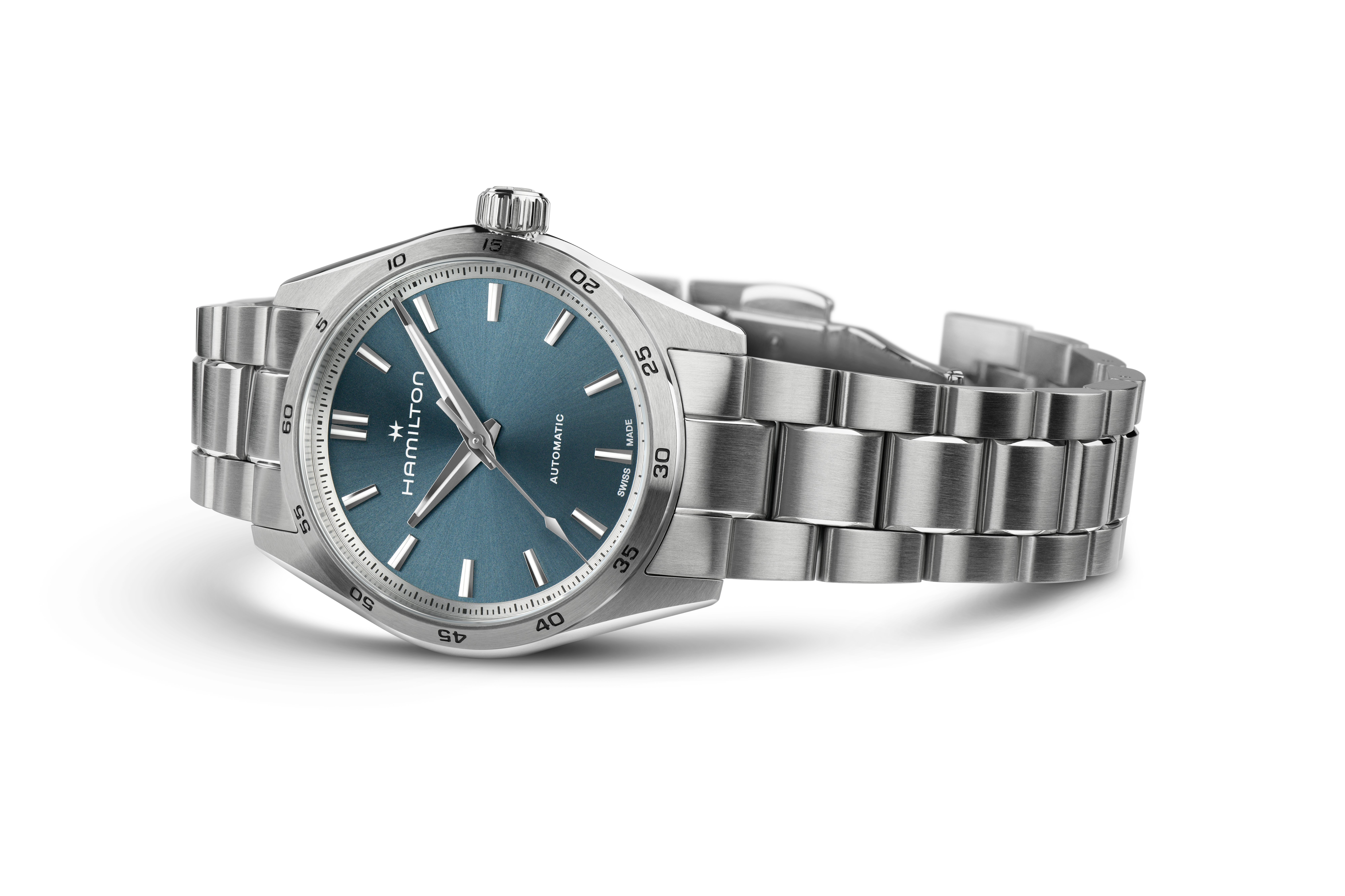 Die Jazzmaster Performer Serie überzeugt durch ihre ausdrucksstarke sportliche Optik und ist wie geschaffen für alle, die weder auf Funktion noch auf Stil verzichten möchten. Diese Jazzmaster Performer Automatic wird vom automatischen Automatikwerk H-10 mit 80 Stunden Gangreserve angetrieben. Sie besitzt ein 34-mm-Edelstahlgehäuse, das durch ein schlicht gehaltenes hellblaues Zifferblatt und ein elegantes Edelstahlarmband abgerundet wird.