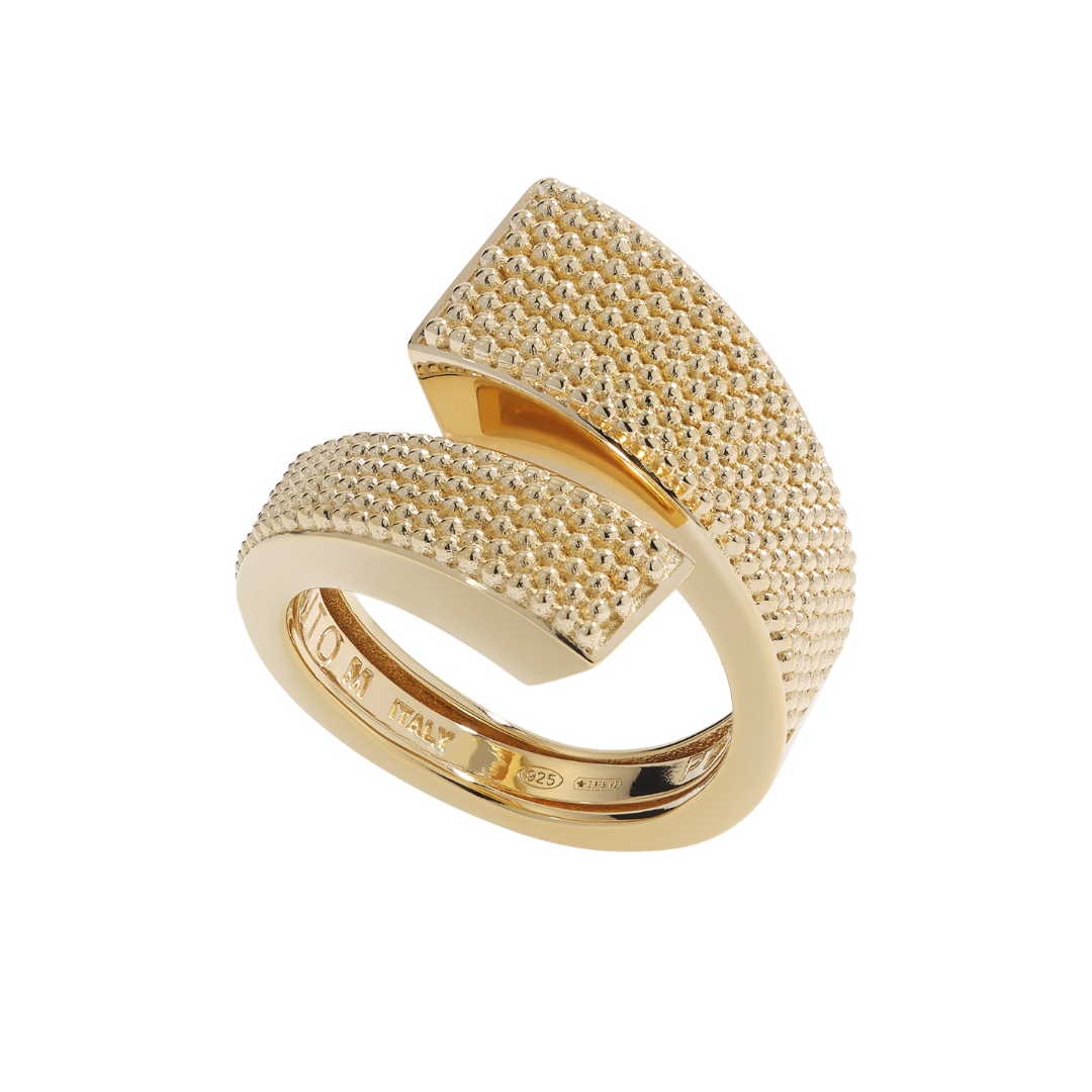 Ring aus der Kollektion Pixel aus 925 Silber und vergoldet mit 750 Gelbgold mit innenliegender Feder für individuelle Anpassung (Ringweite 56 – 53).