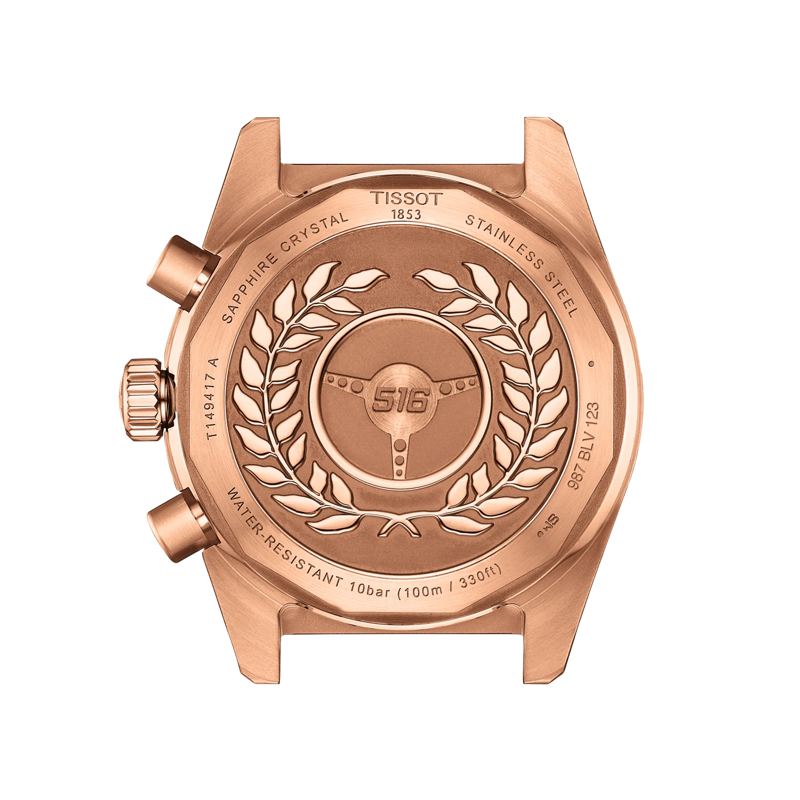 Die Tissot PR516 Quartz Chronograph positioniert sich mit ihrem schwarzen Zifferblatt und der auffälligen roségoldfarbenen PVD-Beschichtung in der vordersten Startreihe. Kombiniert mit einem ebenso massiven wie flexiblen Armband aus 316L-Edelstahl, schlägt dieser Zeitmesser im bewegten Rhythmus Ihres Lebens und sorgt dafür, dass Sie Zeit und Ziel immer im Blick behalten.